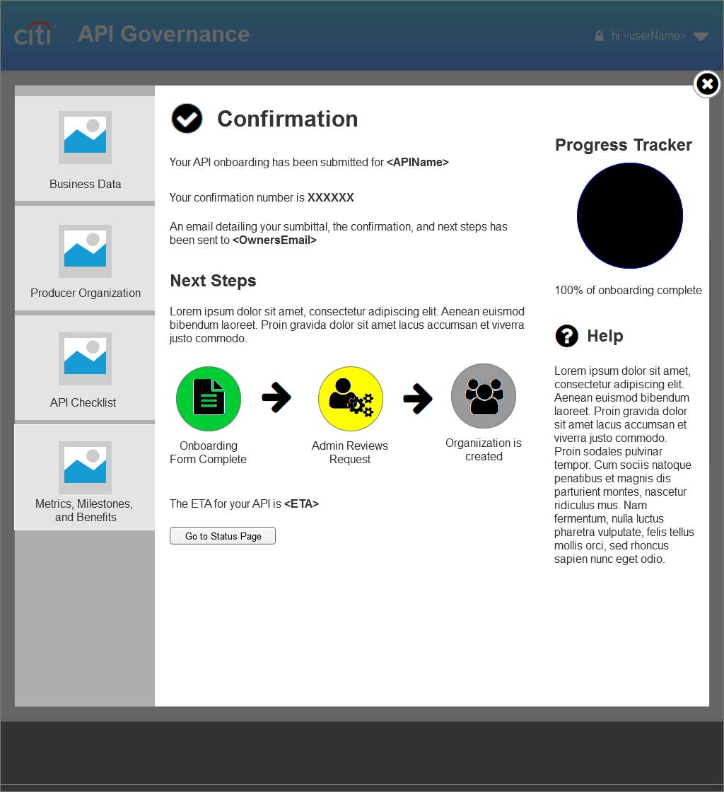 The Citi API Developer portal was created out of necessity for the internal Citi developers to be able to make requests for new APIs they were developing, track the progress of the approval of the APIs, and make necessary change requests for the APIs they were working on