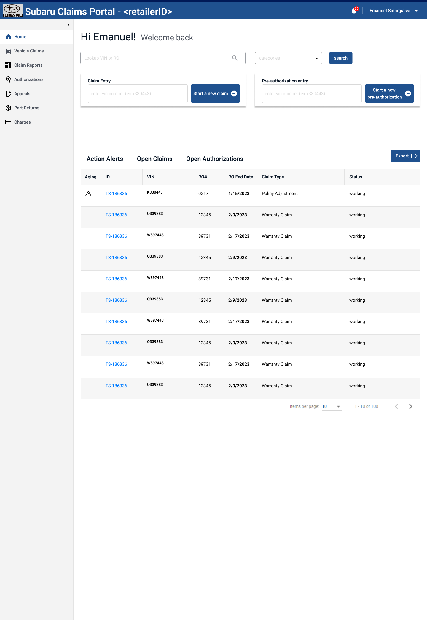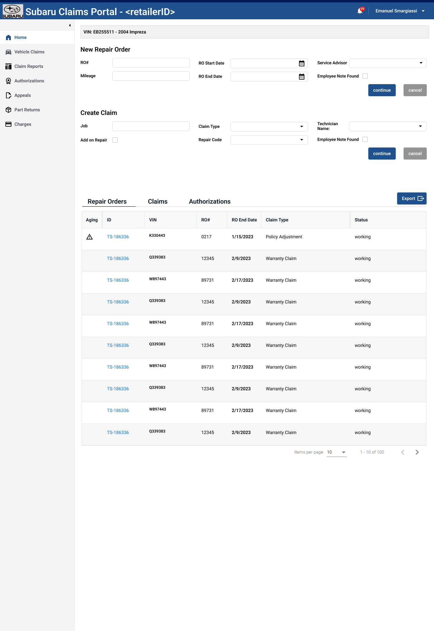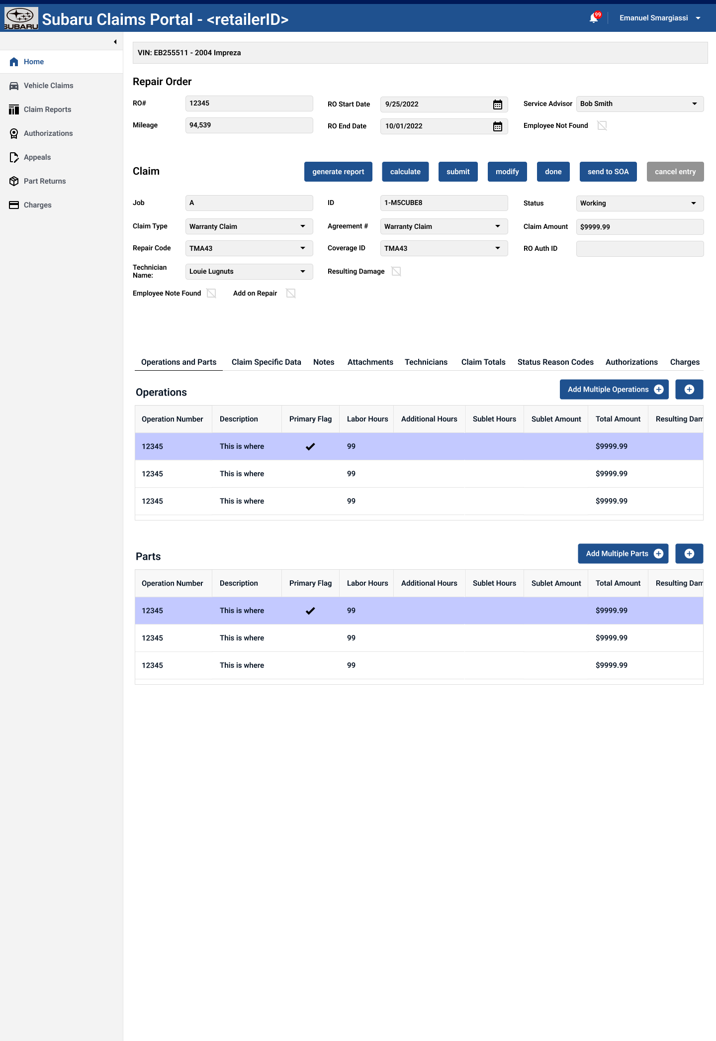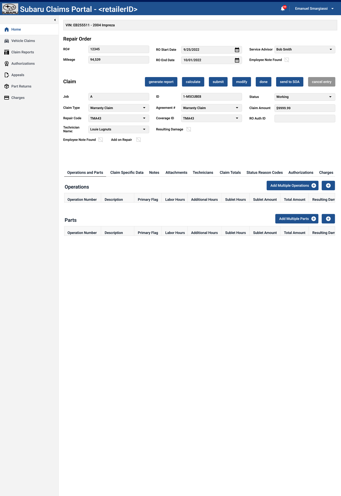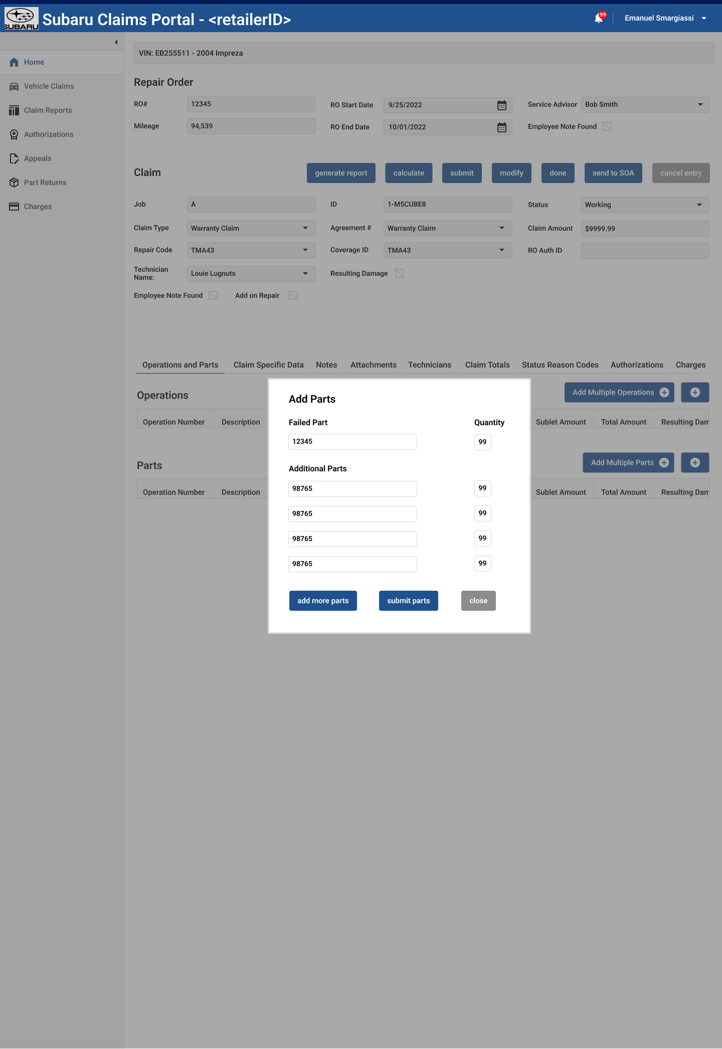 Subaru of America (SoA) had an aging warranty system that their retailers were utilizing. They needed an updated system built off of Angular and wanted to address certain usability concerns and make the system more seamless for the end user technicians.